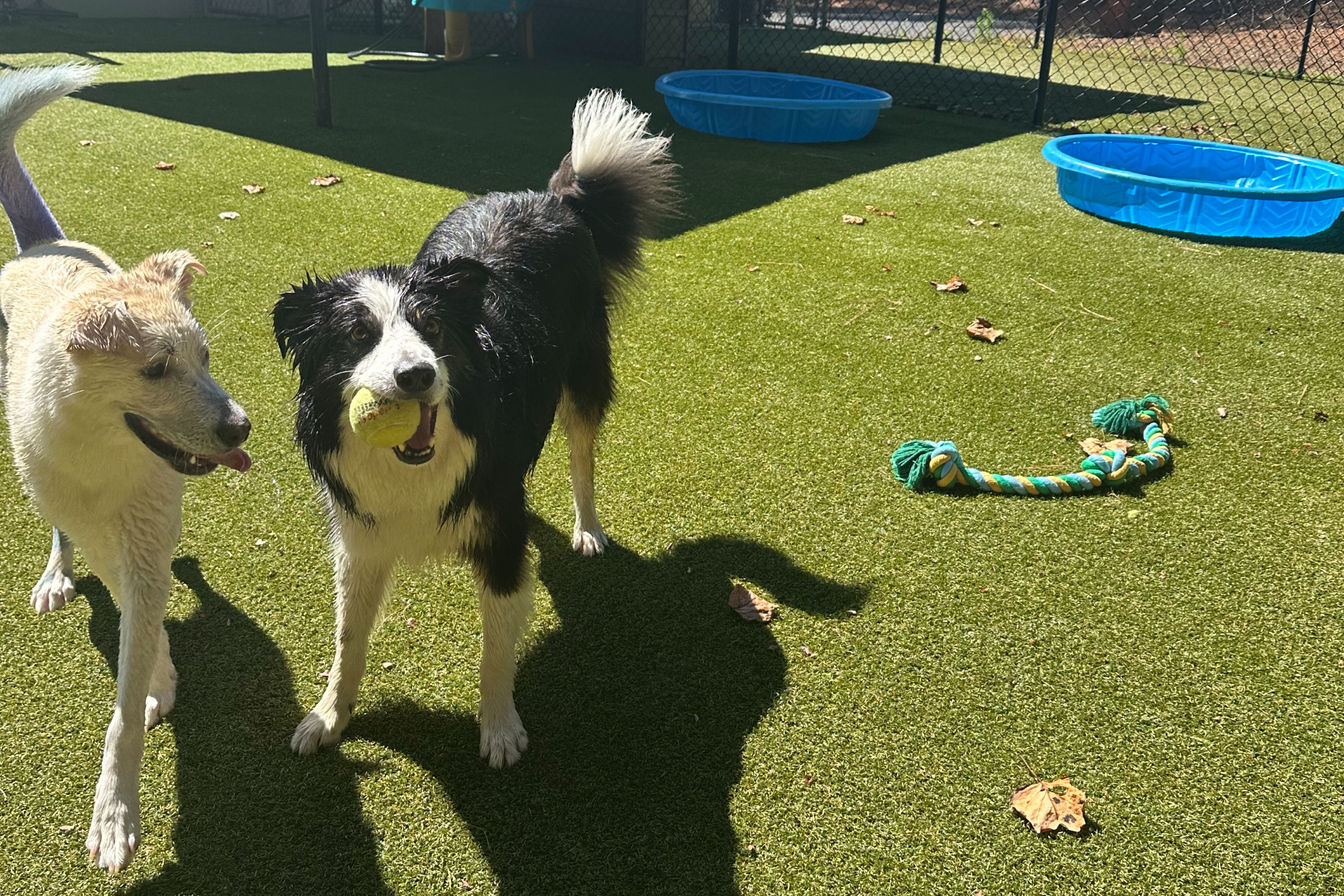 Our daycare is designed to keep your pup active, engaged, and happy all day long. With a variety of enrichment toys, sensory textures, and interactive puzzles, your dog will stay mentally and physically stimulated. Paired with the loving care of our dedicated staff, every dog gets the attention, play, and socialization they need in a safe and supervised environment.